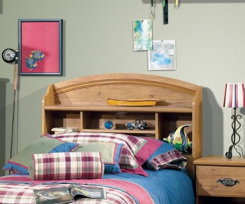 3232098 South Shore Bookcase Headboard, Twin Size, Prairie Collection, Country Pine. This elegant bookcase headboard with stylized decorative molding and plenty of storage space brings a vintage timeworn charm to any bedroom and will complement your 6-piece bedroom furniture ensemble.